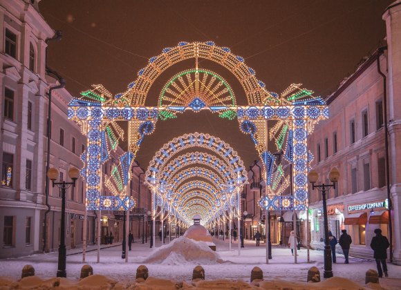 Автобусная обзорная экскурсия по городу «Новогодняя столица». Посмотрите, как выглядит новогодняя Казань! В ярком новогоднем украшении и морозном запахе хвои, древний город предстанет в самом его сказочном воплощении! Достопримечательности тысячелетнего города соединили в себе культуру Запада и традиции Востока: Старо-Татарская слобода, где проживало с XVI века татарское население, Суконная слобода — промышленные преобразования Петра I, площадь фонтанов, озеро Кабан — его тайны и легенды, стилизованная деревенька «Туган авылым» («Родная деревня»), новый Театр Кукол, Казанский университет, площадь Свободы — культурный и административный центр Казани. Старейшая мечеть Марджани и Богородицкий монастырь, в котором хранится один из старейших списков Казанской иконы Божьей Матери. И повсюду – ощущение праздника, волшебства и красоты!